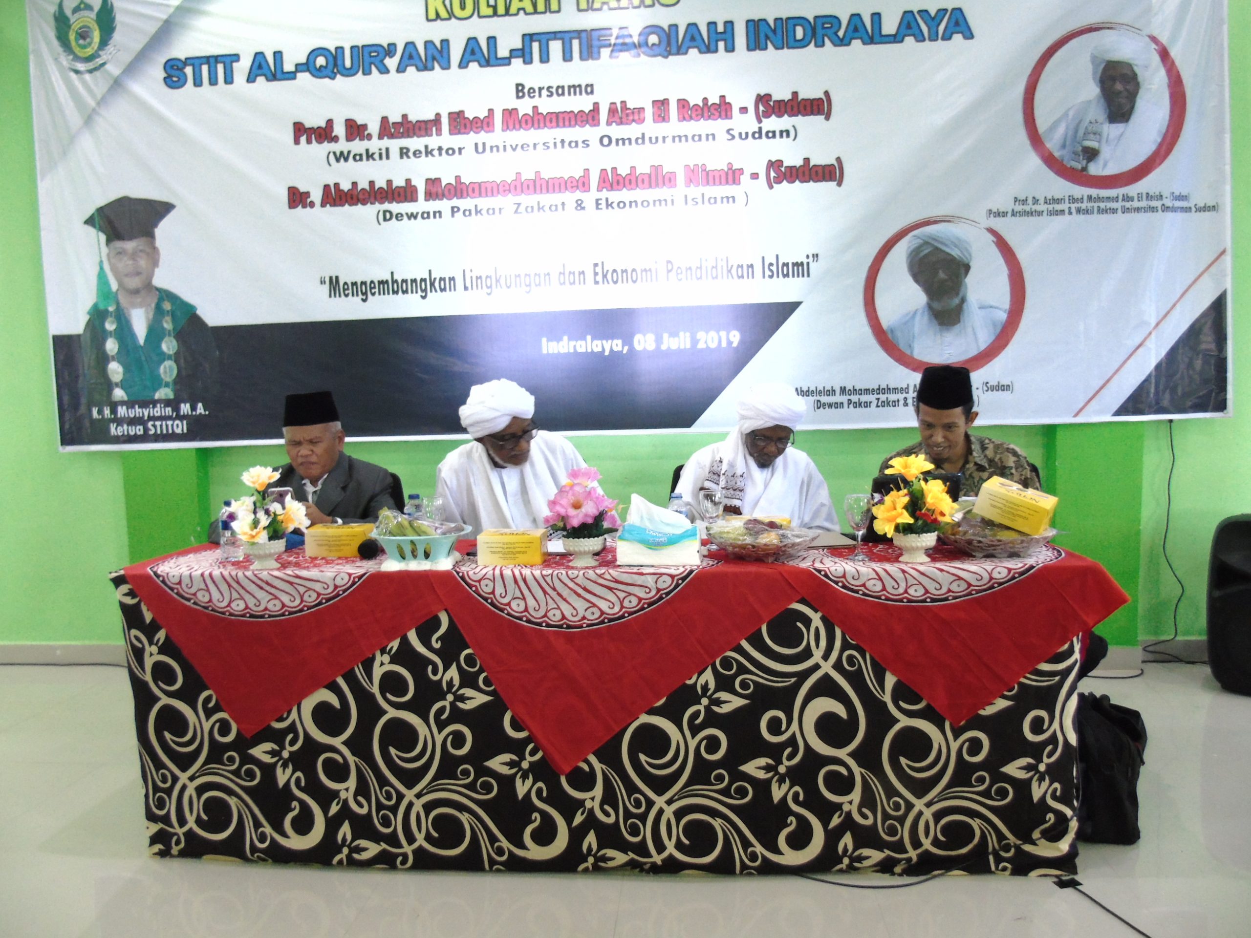 Stitqi.ac.id_Indralaya; Kuliah Tamu STIT Al-Qur’an Al-Ittifaqiah Indralaya yang diselenggarakan di gedung idaroh lanatai tiga, dihadiri oleh seluruh dosen. (8/7) Mengambil tema mengembangkan lingkungan dan pendidikan ekonomi Islam, Prof. Dr. Azhari Ebed Muhammed Abu El Reish dan Dr. Abdelelah Mohamedahmed Abdalah Nimir. Begitu antusias memberikan wawasan dan pengetahuan akan perkembangan ekonomi