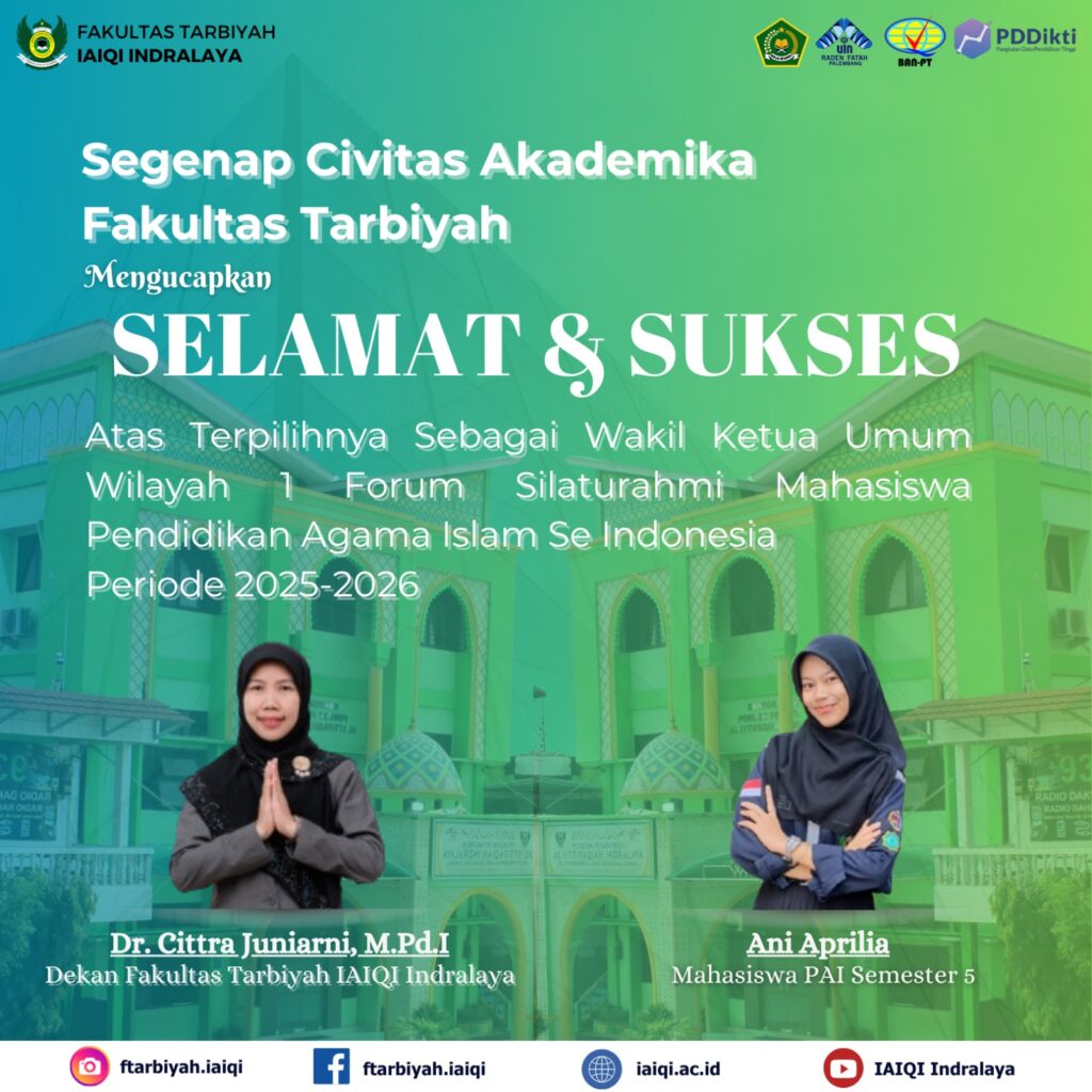 Indralaya, 15 Juli 2025 – Kabar gembira datang dari Institut Agama Islam Al-Qur’an Al-Ittifaqiah (IAIQI) Indralaya. Ani Aprilia, mahasiswi Program Studi Pendidikan Agama Islam (PAI) semester 5, berhasil terpilih sebagai Wakil Ketua Umum Wilayah 1 Forum Silaturrahim Mahasiswa Pendidikan Agama Islam (PAI) Se-Indonesia untuk periode 2025-2026. Pencapaian ini menjadi kebanggaan bagi civitas akademika IAIQI dan menunjukkan dedikasi serta potensi luar biasa dari Ani dalam memimpin dan berkontribusi di tingkat nasional.